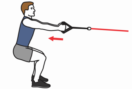 - Standing in a low position with feet shoulder width apart, hold the handles of the cable (or elastic) neutral grip (palms facing you). Pull the load just under your chest. Keep your back straight and abs tight.