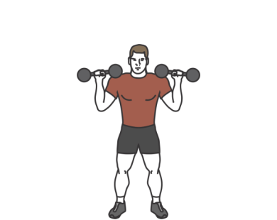 - Keep your back straight, abs tight and knees slightly bent - Push the dumbbells up with elbows under the load