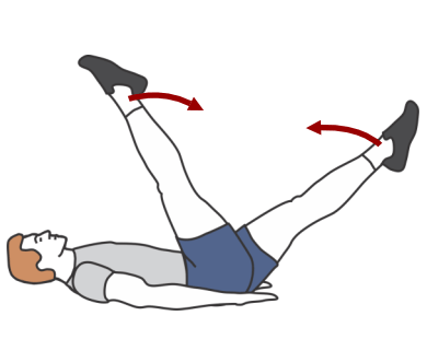 - Keep your abs tight and your legs straight. Alternate moving the legs back and forth.
