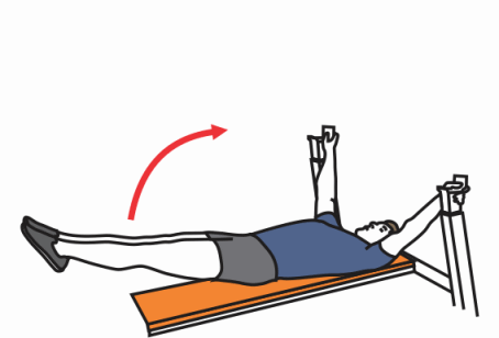 - Empieza con la espalda apoyada en el banco y mantén los abdominales apretados. Mantén las piernas rectas y levántalas con el cuerpo al final del movimiento.